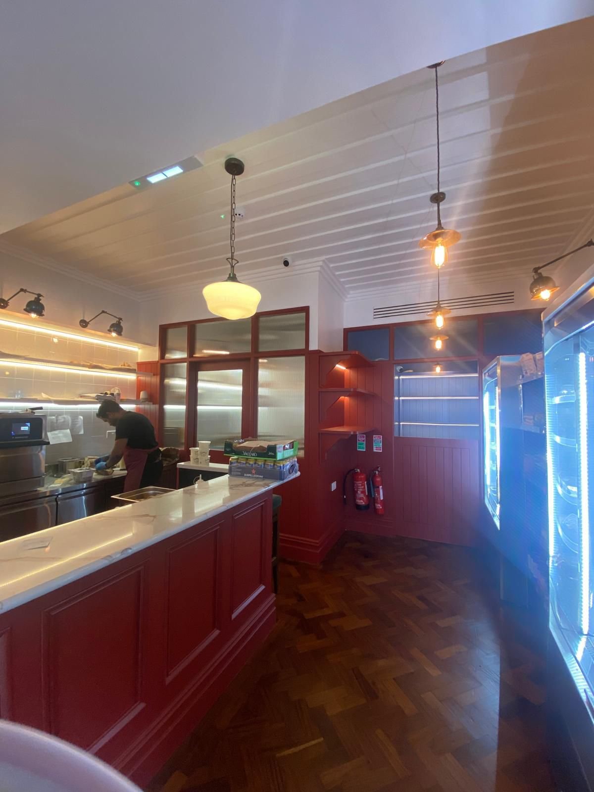 Complete electrical installations for retail spaces, including display lighting and security systems.